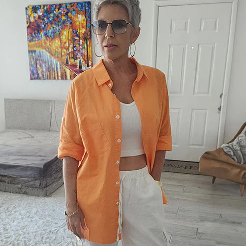 „Ich bin verliebt in dieses Oversized Shirt. Die Passform ist einfach perfekt - nicht zu eng, nicht zu weit. Ich fühle mich so mühelos schick, wenn ich es anziehe, und das Beste daran? Ich kann es auf 5 verschiedene Arten stylen, dass ich das Gefühl habe, mein Outfit zu wiederholen!“