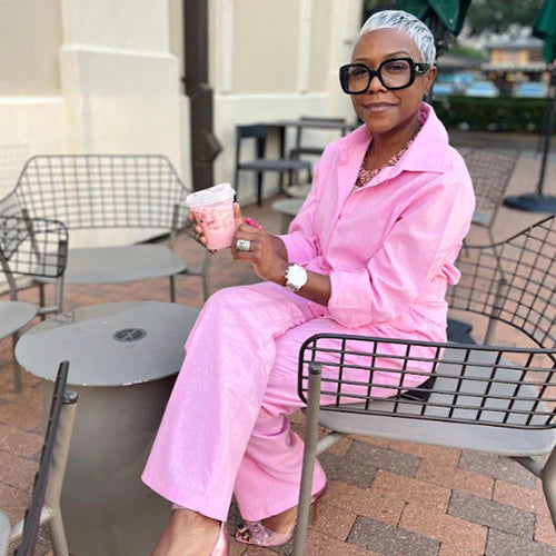 "Dieses Set ist wunderbar! Leuchtende Farbe und ein toller Stoff. Ich habe vor, noch ein Set zu bestellen. Man kann dieses Outfit nach oben oder unten tragen. Ich liebe, wie es sich auf meinem Körper anfühlt. Das ist das Geld wert.“